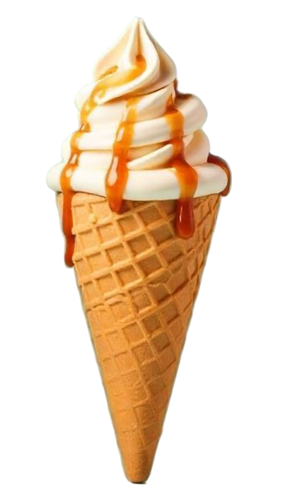 Smooth caramel ice cream dripping with golden temptation.