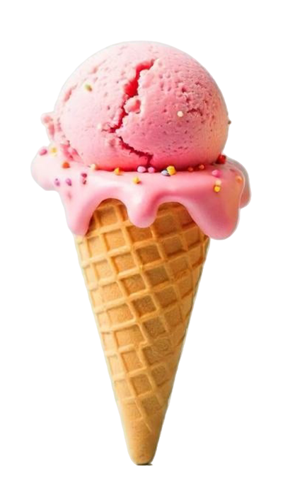Juicy strawberry scoops topped with a swirl of sweet delight.